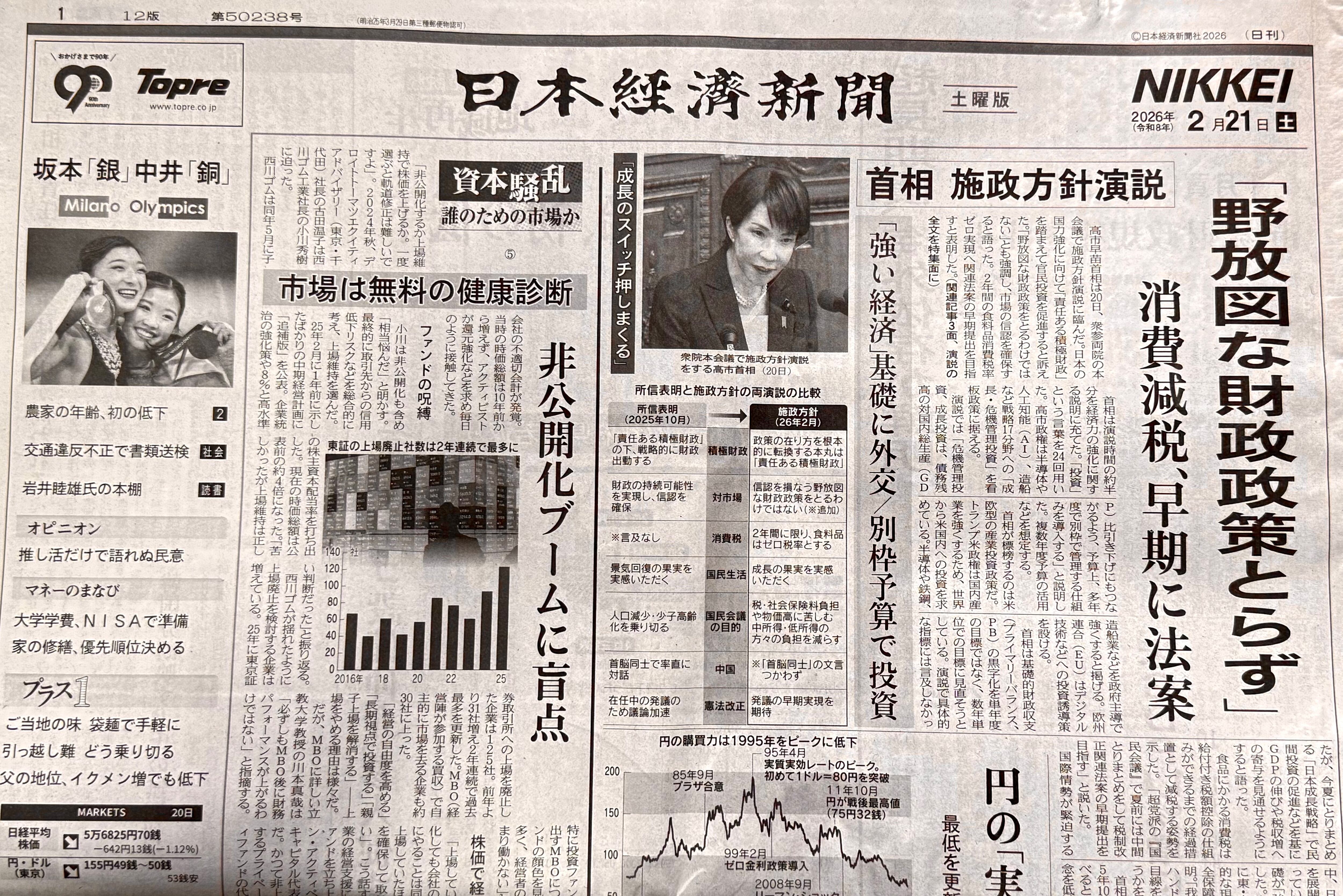 日本経済新聞 令和8年2月21日