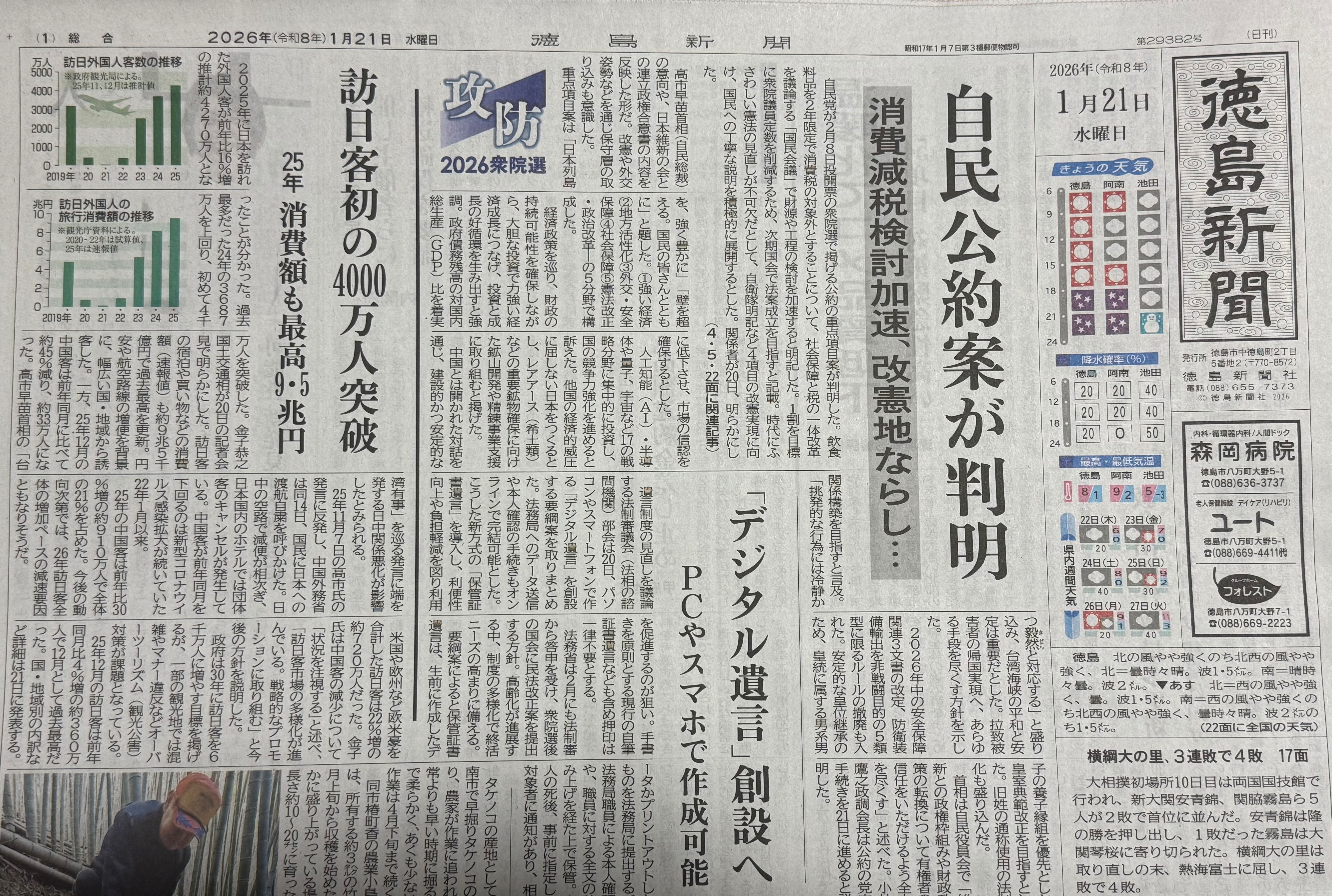 徳島新聞 令和8年1月21日 未使用過去新聞紙