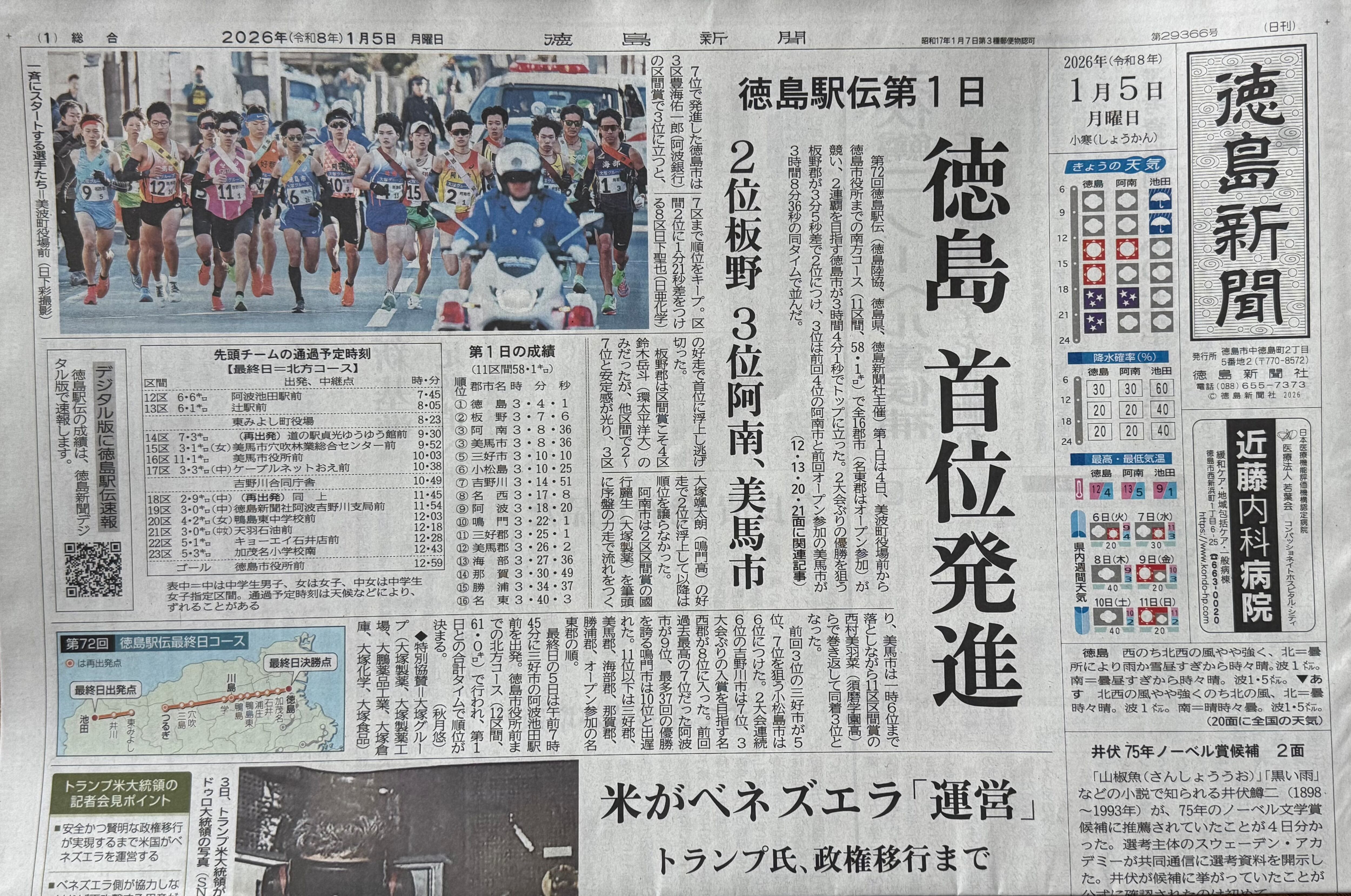 徳島新聞 2026年1月5日 未使用過去新聞紙
