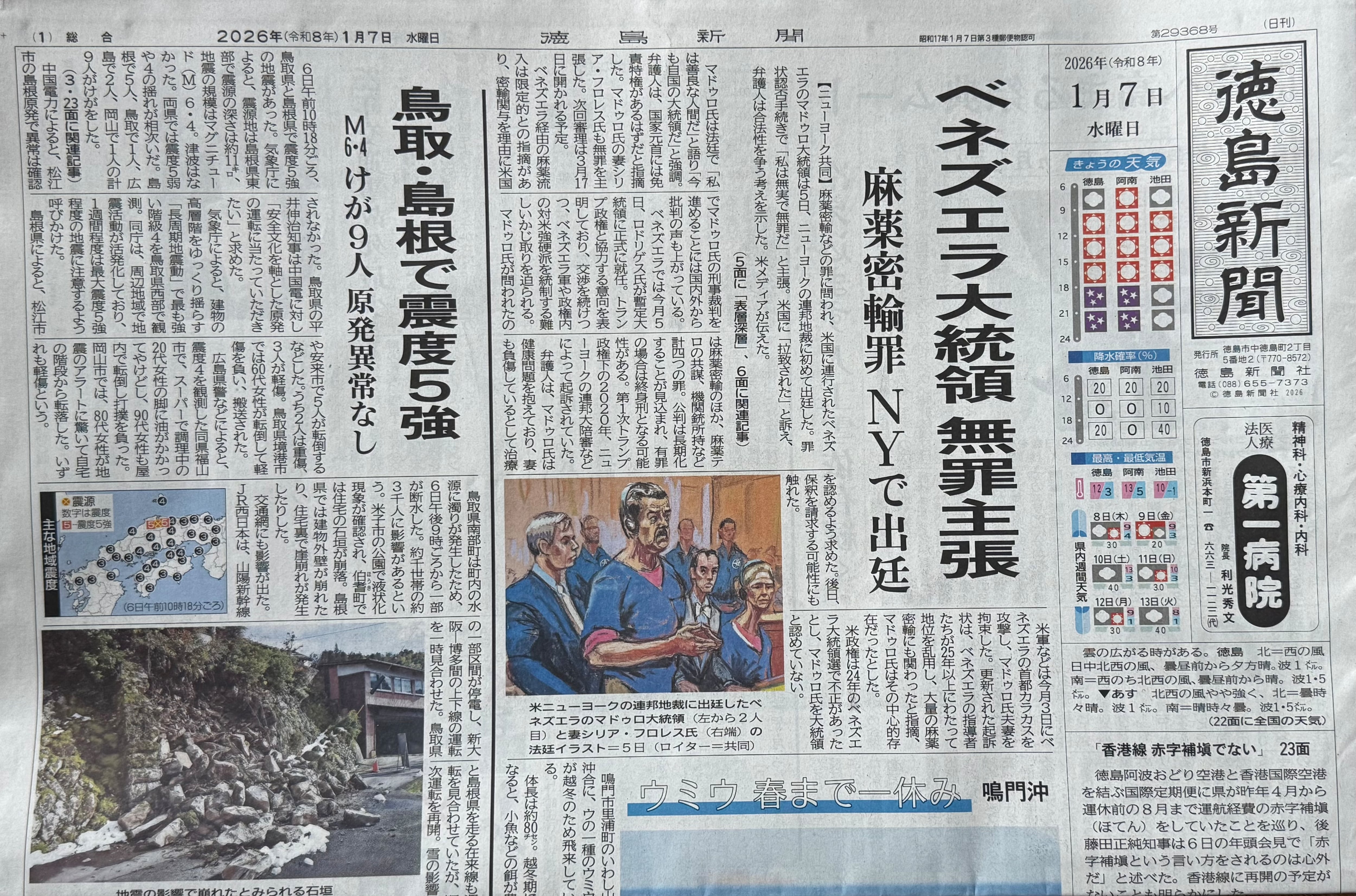 徳島新聞 令和8年1月7日 未使用過去新聞紙