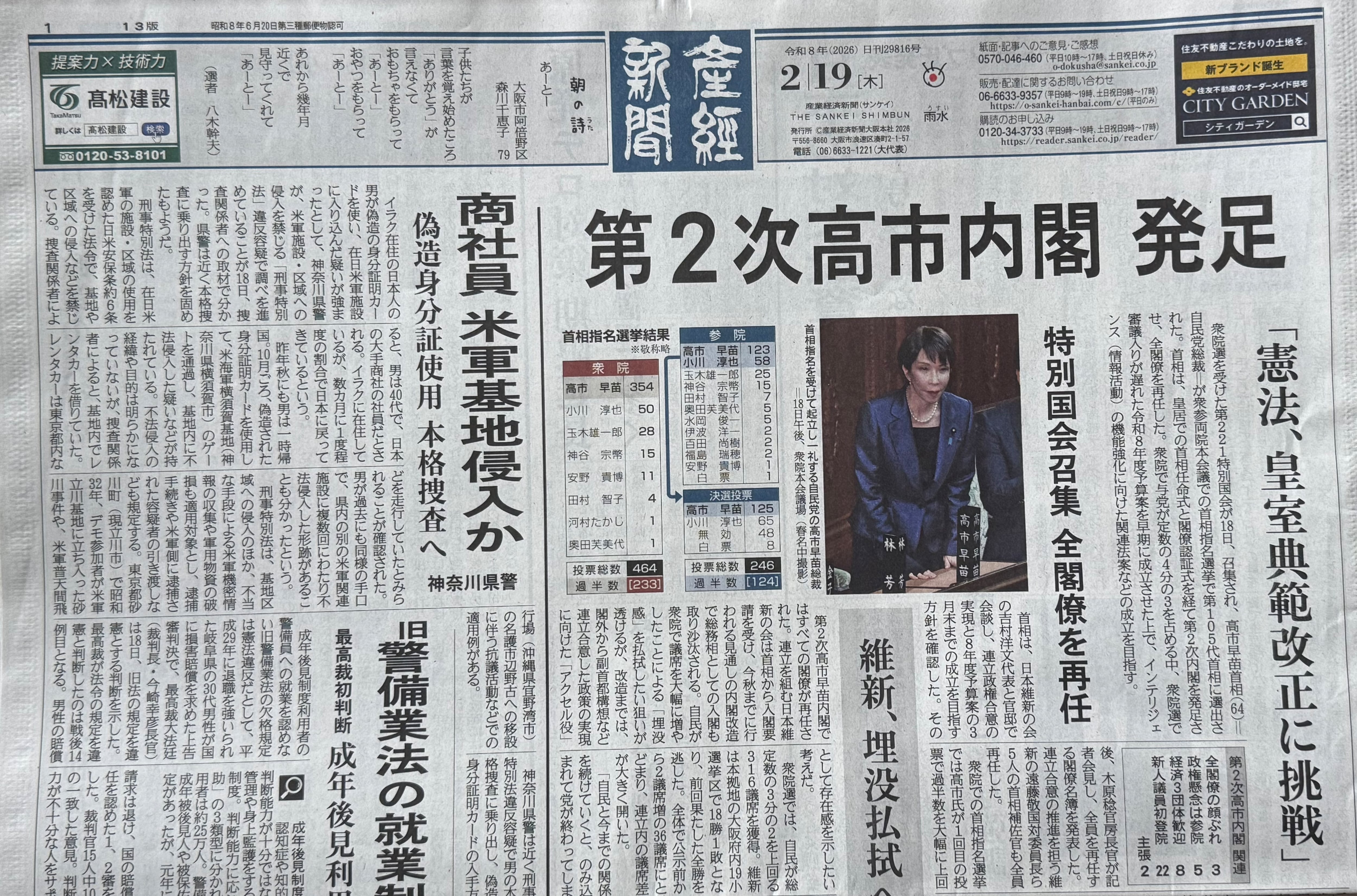 産経新聞 2026年2月19日 未使用過去新聞紙