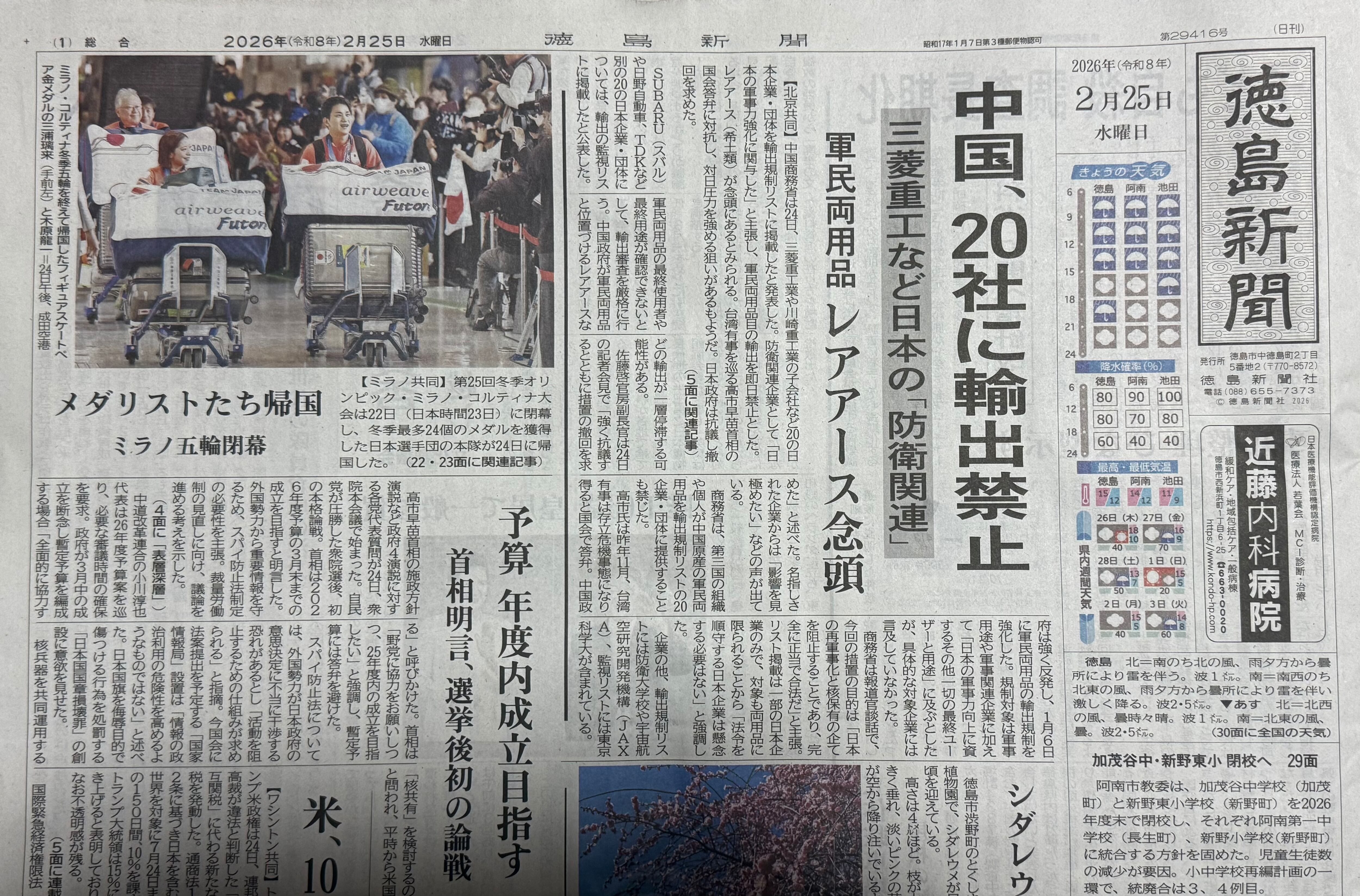 徳島新聞 2026年2月25日 未使用過去新聞紙